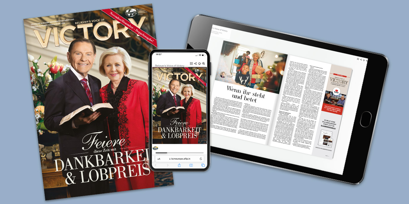Lass dich ermutigen und stärke deinen Glauben, indem du dich Tausenden von Gläubigen anschließt, die unser KOSTENFREIES Monatsmagazin "Believer's Voice of Victory" erhalten. Jeden Monat erhältst du zusätzliche Bonusinhalte, wenn du dich für den E-Mail-Versand anmeldest. Du kannst auch jetzt lesen oder die Zeitschrift per Post erhalten.
